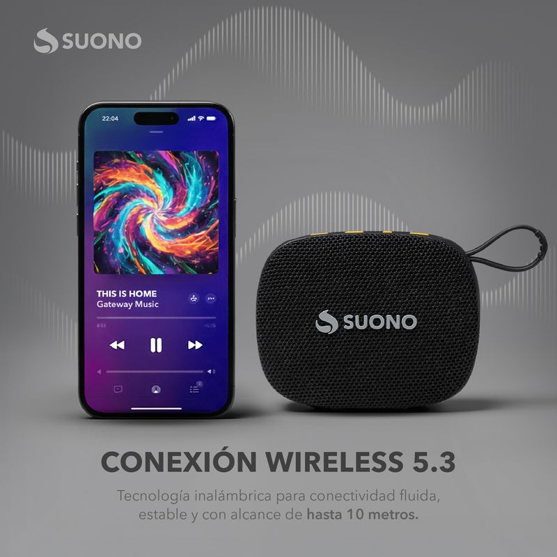 Disfrutá de tu música favorita donde quieras con este parlante Bluetooth inalámbrico de 6W, diseñado para ofrecer un sonido claro y estable en un formato compacto y liviano. Su conectividad avanzada y resistencia a salpicaduras lo convierten en el compañero ideal para el hogar, viajes o actividades al aire libre.