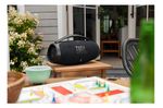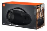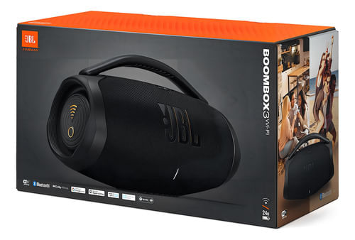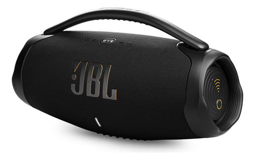 El altavoz JBL Boombox 3 Wi-Fi y Bluetooth ofrece un potente sonido JBL Original Pro con los bajos más profundos de un altavoz portátil. Reproduce música de alta definición en cualquier lugar con el JBL Boombox 3, incluyendo Dolby Atmos 3D a través de Wi-Fi. ¿Estás atendiendo una llamada o revisando tu feed? Adelante, la música no se interrumpe. Cambia fácilmente a Bluetooth y sigue disfrutando de experiencias de audio sin interrupciones, tanto en interiores como en exteriores. Con una batería con 24 horas de autonomía y un diseño resistente al agua y al polvo, siempre estarás listo para las aventuras de todo el día. Reproduce música a través de AirPlay, Alexa Multi-Room Music, Spotify Connect y Chromecast built-in™ Disfruta de todos tus contenidos de audio favoritos, radio por Internet y podcasts con un increíble sonido de alta definición. Y vayas donde vayas, los materiales ecológicos, fabricados con plástico reciclado posconsumo y con tejido reciclado en la rejilla del altavoz, ayudarán a cuidar un poco más del planeta.