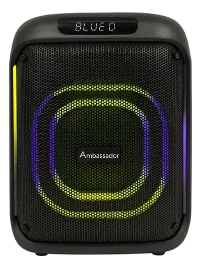 Descubre el Parlante Portátil Ambassador Bluetooth SH-8.2/40, diseñado para llevar tu experiencia musical a otro nivel. Con una potencia de salida de 40 W, este parlante ofrece un sonido envolvente gracias a su configuración de canales 2.0 y sus tres parlantes, que incluyen un woofer de 8" y tweeters de 2".