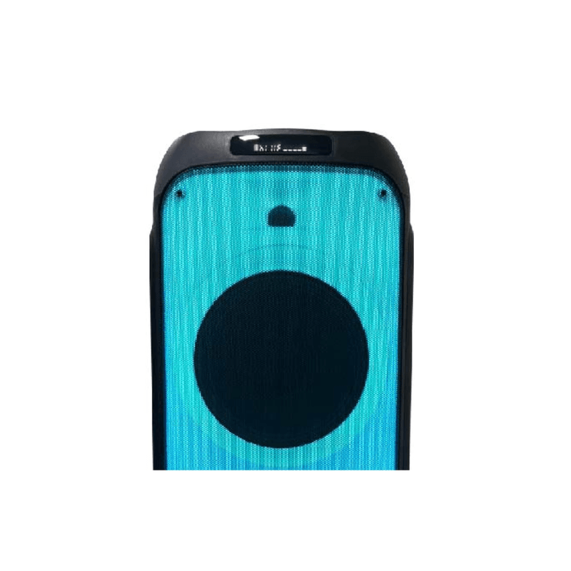 Su diseño robusto y transportable, junto a su paquete completo de funciones (Karaoke, TWS y luces), lo posicionan como la mejor opción en la categoría de parlantes para fiestas de alta gama.