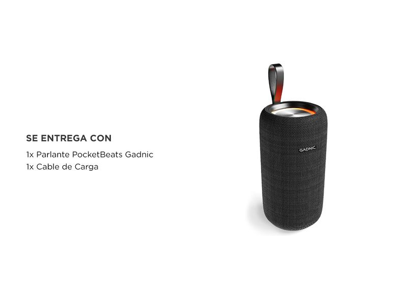 Con dimensiones de 87 x 110 x 87 mm, el parlante es fácil de transportar. Incluye un cable de carga USB y un manual de usuario para una configuración rápida y sencilla. Sus botones funcionales permiten cambiar de modo, ajustar el volumen y encender/apagar el dispositivo con facilidad.