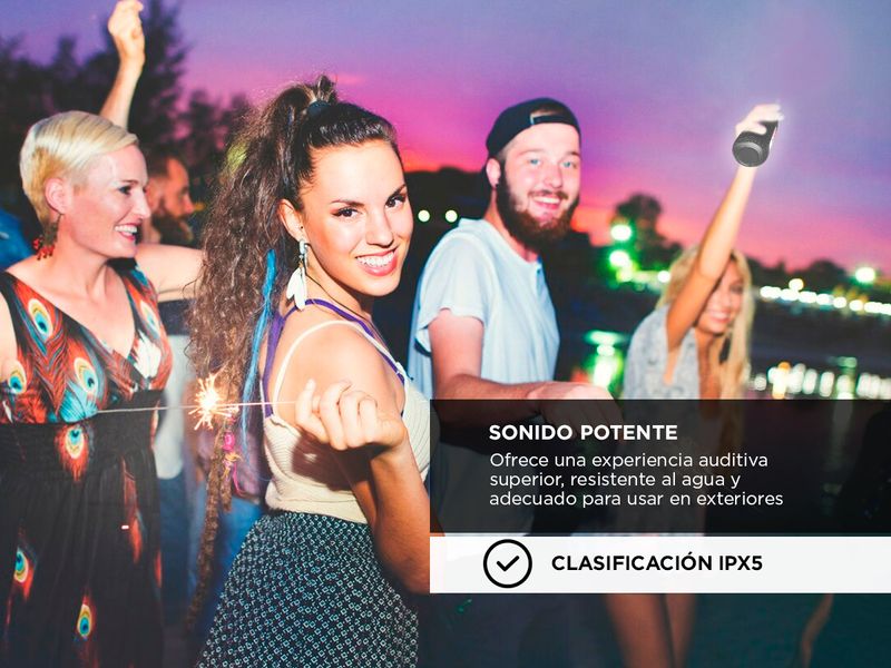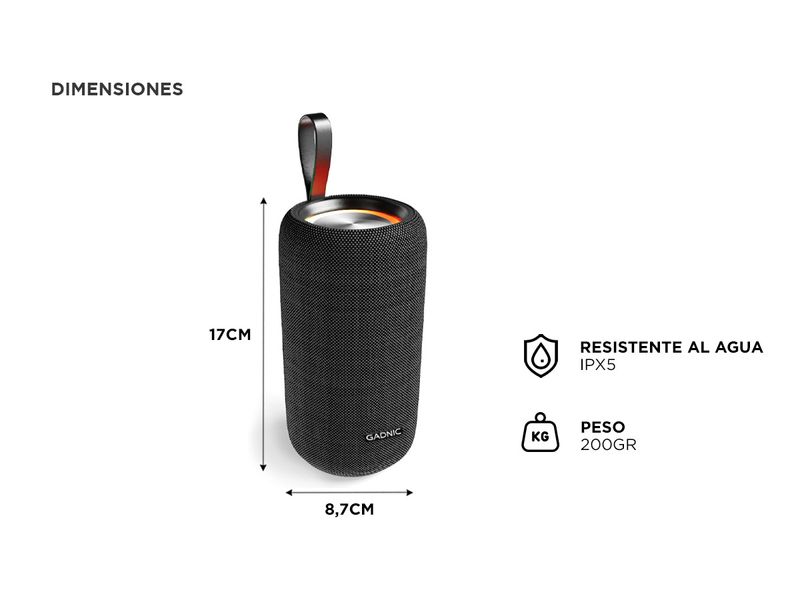 El EchoGod cuenta con una clasificación IPX5, haciéndolo resistente al agua y adecuado para usar en exteriores, en la playa, o junto a la piscina. La batería de litio de 3.7V 1200mAh permite disfrutar de hasta 4 horas de música continua al 70% del volumen, y se recarga completamente en solo 3 horas mediante el puerto USB.