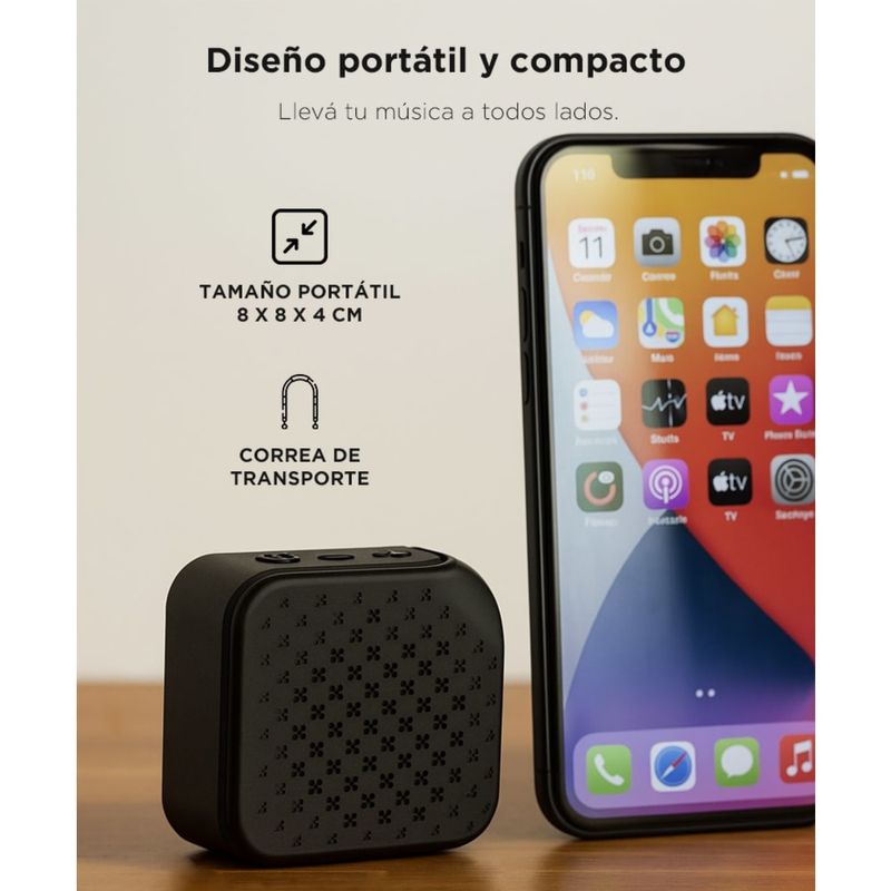 A pesar de su tamaño, ofrece una potencia real de 5W, brindando un audio nítido y equilibrado. Disfrutá de tu música, podcasts o llamadas con una calidad que sorprende en su categoría.