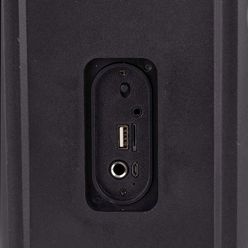 Compacto y Ligero: Con un peso de solo 1 Kg y unas dimensiones de 38 x 18 x 15 cm, este parlante es fácil de transportar, lo que te permite llevarlo a cualquier lugar.