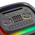 Modo Karaoke Incluido: Viene con micrófono incluido, listo para que organices sesiones de karaoke o lo uses para hacer anuncios en tus reuniones. Además, las luces LED incorporadas se encienden al ritmo de la música, creando el ambiente de fiesta perfecto.