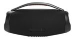 Hemos mejorado aún más nuestro altavoz Bluetooth portátil más potente. La icónica silueta del JBL Boombox 3 presenta una nueva y atrevida versión con un resistente asa de metal y empuñaduras de silicona, dos tapas laterales y un tejido resistente al agua y al polvo. También se ha rediseñado el interior, con un nuevo subwoofer que ofrece graves mucho más profundos y el arrollador JBL Original Pro Sound, todo ello con menor distorsión. Gracias a las 24 horas de tiempo de reproducción, podrá acompañarte desde el entrenamiento de la mañana hasta la cita nocturna con tus amigos. Y para disfrutar de un sonido prácticamente ilimitado, puedes conectar varios altavoces con la aplicación JBL Portable.