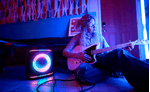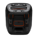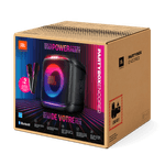 Se puede conectar con otros altavoces JBL compatibles mediante Auracast™ para ampliar el sonido en fiestas más grandes. También cuenta con entrada auxiliar, USB-C y entrada para guitarra con preganancia y control de volumen, lo que lo convierte en una opción versátil para músicos.