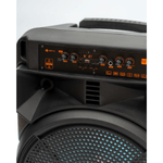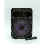Incluye micrófono inalámbrico y control remoto para disfrutar karaoke, presentaciones o animar eventos con total libertad.