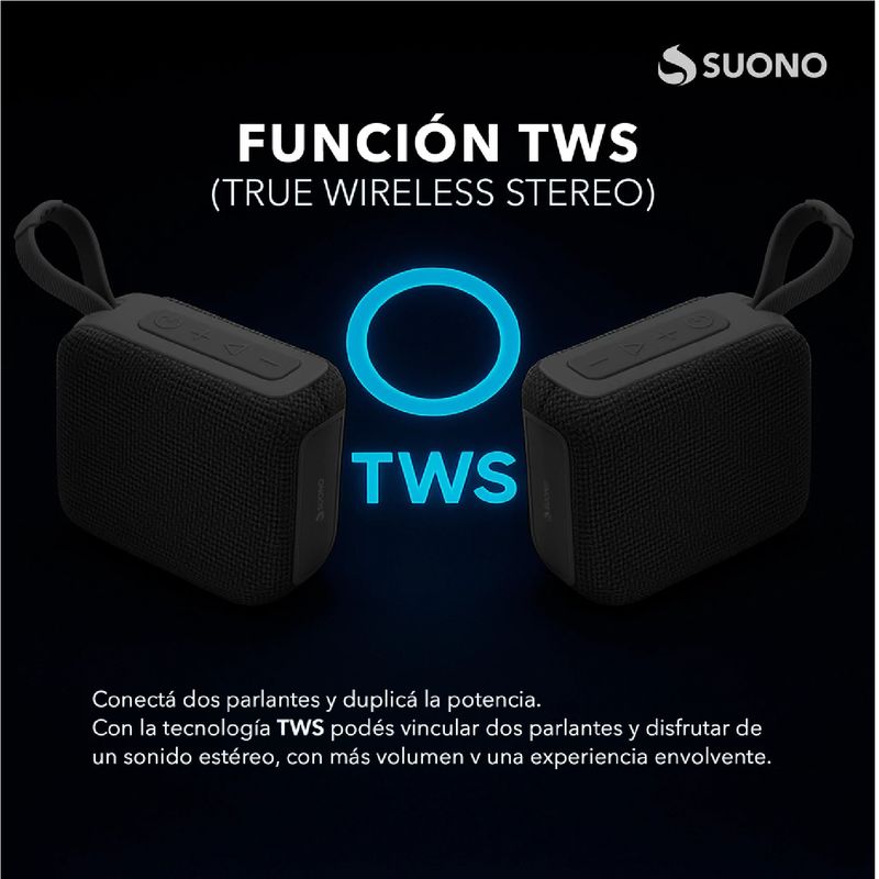 Descubrí el Parlante Portátil Suono AYV0363, diseñado para acompañarte en cada momento con un sonido claro y potente gracias a su altavoz de 5W y salida total de 15W en modo TWS. Su batería de 1200mAh te ofrece horas de música sin interrupciones.