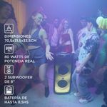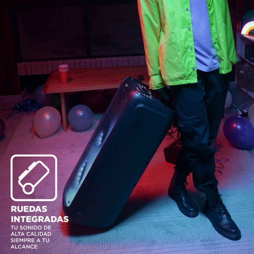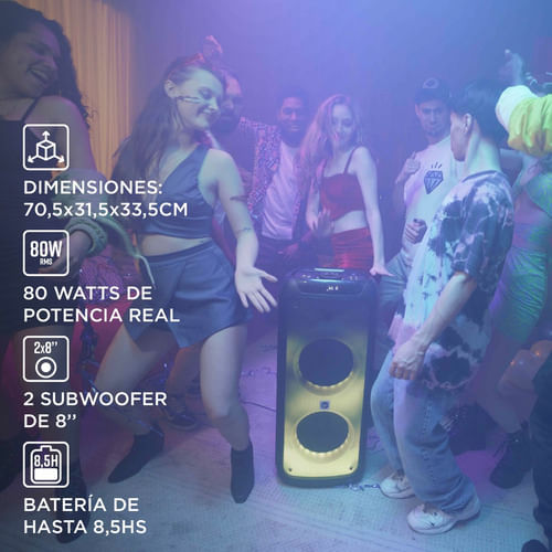 Su ecualizador ajustable permite personalizar la experiencia de sonido, optimizando los bajos y agudos según el estilo musical o la ocasión. Además, su batería de larga duración y el power bank integrado aseguran un uso prolongado sin interrupciones, ofreciendo máxima comodidad para llevar la música a cualquier lugar.