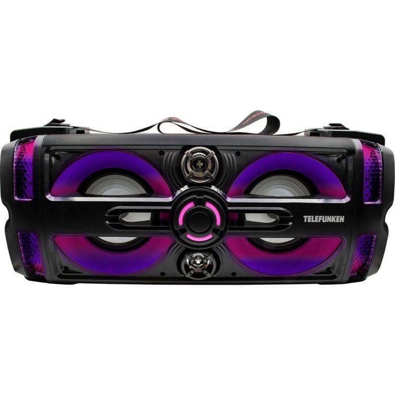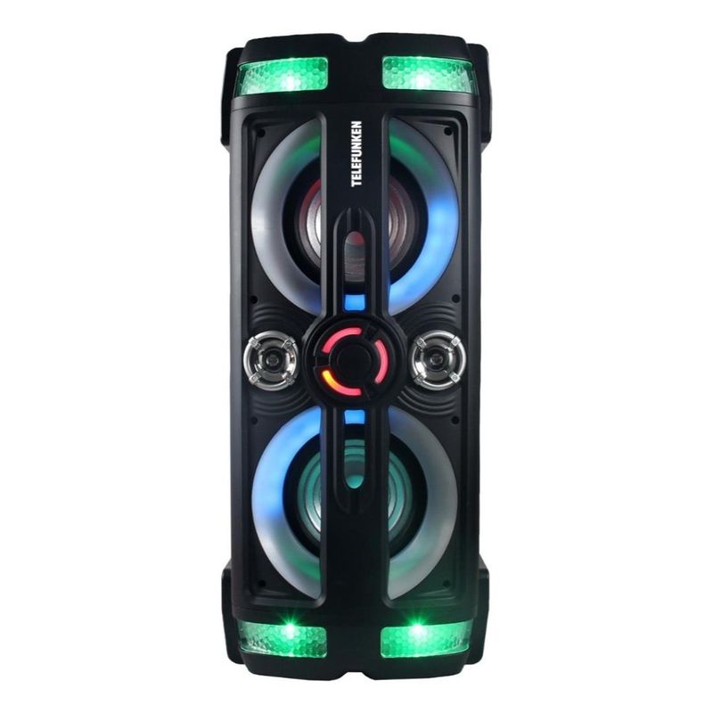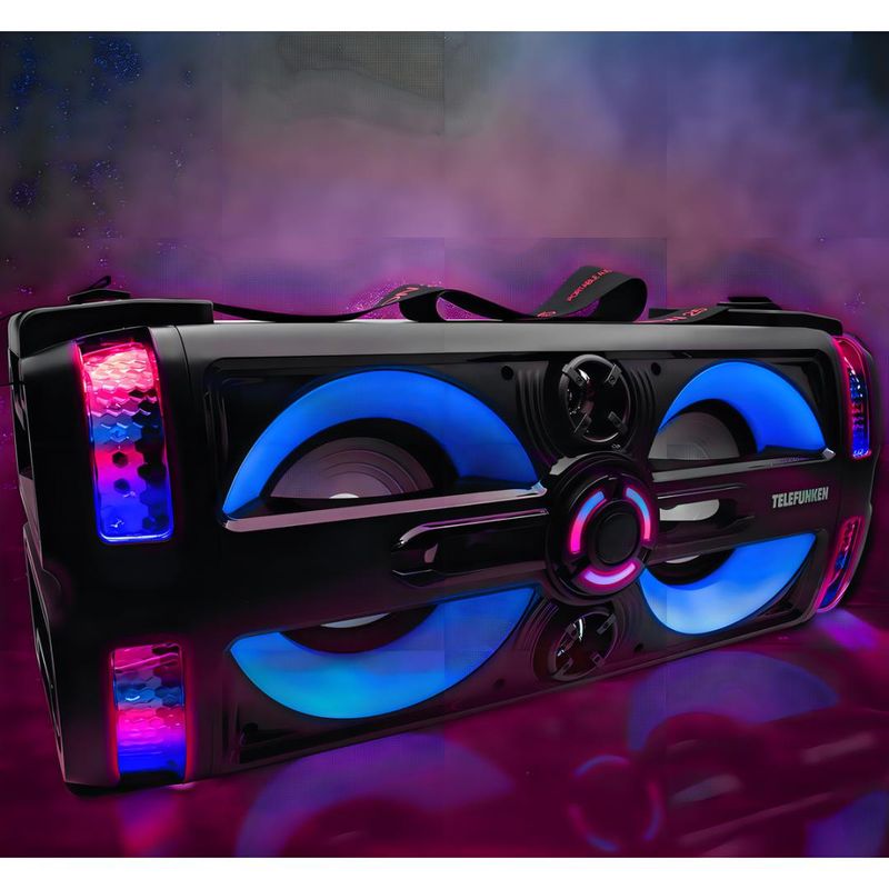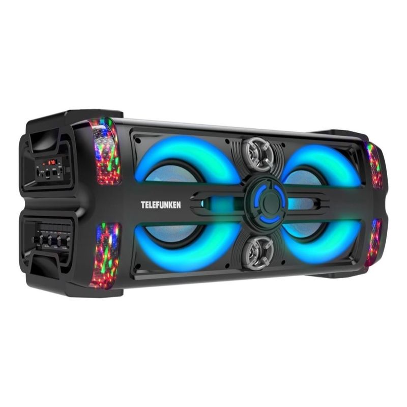 El Parlante Telefunken Neon 25 es la opción ideal para quienes buscan calidad de sonido y portabilidad. Con una potencia de salida de 300 W, este parlante ofrece un rendimiento excepcional, perfecto para fiestas, reuniones o simplemente disfrutar de tu música favorita en cualquier lugar. Su diseño en color negro y formato de caja lo hace elegante y fácil de transportar, gracias a su manija integrada.
