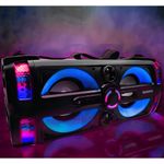 Las luces LED integradas añaden un toque visual a tus eventos, creando un ambiente festivo. Con una configuración de canales 2.1 y un woofer activo, el sonido es envolvente y de alta calidad. Este parlante es ideal para quienes buscan una experiencia musical completa y versátil, sin complicaciones.