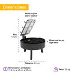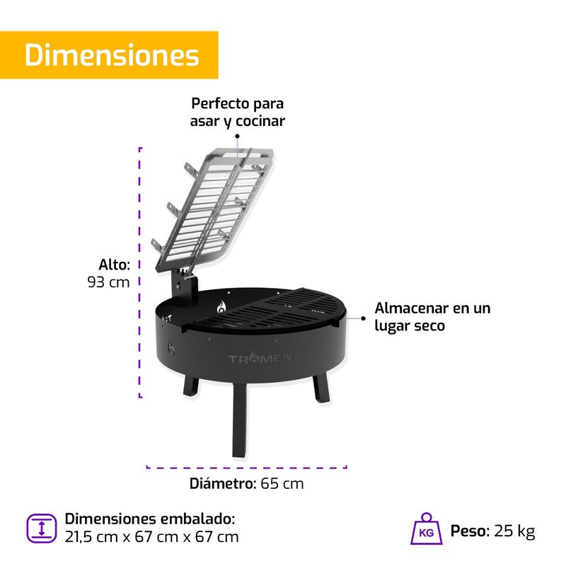 Diseño robusto y funcional para asados memorables. Incluye parrilla enlozada, cruz para asado y patas encastrables.