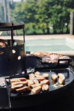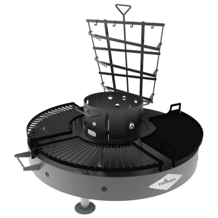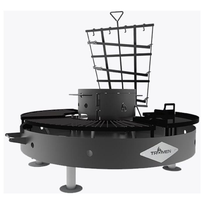 La parrilla ideal para los amantes de los fuegos. Cuenta con módulos de parrilla y plancha desplazables. Asador y fogonero.