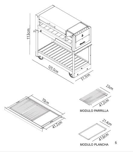 * Módulo de parrilla enlozada desmontable.
