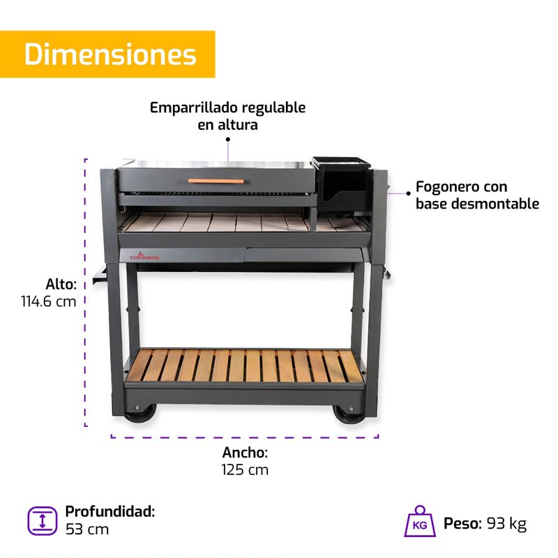 * Fogonero con base desmontable y soporte.