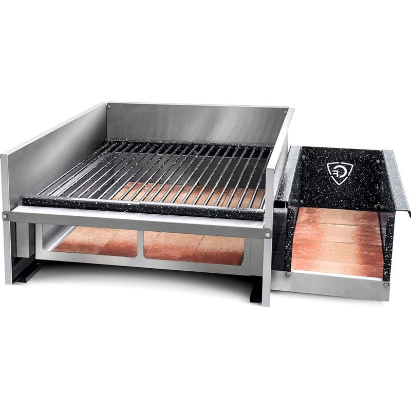 - Rejilla de apoyo inferior: Ideal para leña, carbón y utensilios