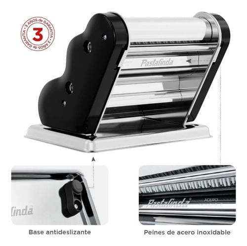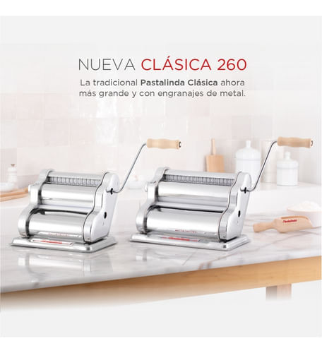 Máquina elaboradora de Pasta Casera. Fácil de usar y con un diseño único y personalizado que te permitirá preparar mayor cantidad de pasta en menos tiempo, gracias a sus 20cm de ancho de masa