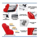 Medidas: Altura 22,5 cm - Ancho 36 cm - Largo 23.5 cm. - Ancho de rodillo/hoja de masa 26 cm. - Rodillos corte: Tallarines (2,5 mm) - cintas (7 mm).