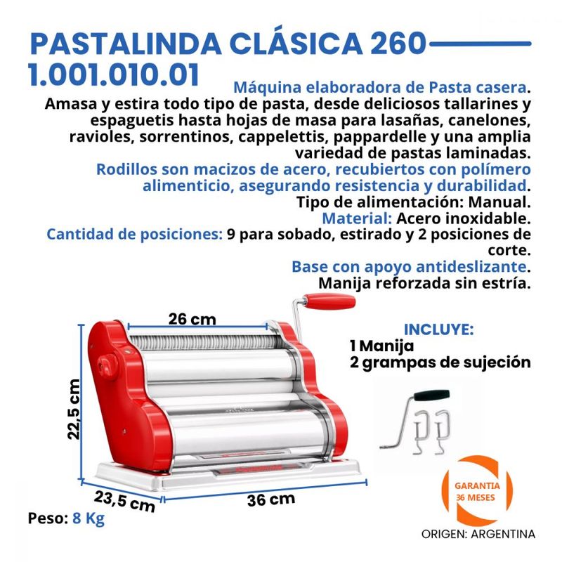 Amasa y estira todo tipo de pasta, desde deliciosos tallarines y espaguetis hasta hojas de masa para lasañas, canelones, ravioles, sorrentinos, cappelettis, pappardelle y una amplia variedad de pastas laminadas.