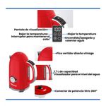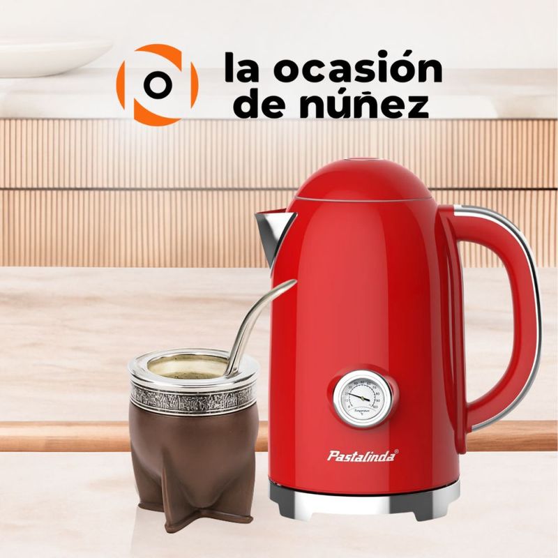Termómetro análogo en el cuerpo de la pava, para saber la temperatura del agua en todo momento.