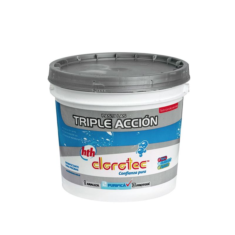 Características- Apto para todo tipos de piletas. Uso dentro de boya o skimmer.Instrucciones1- Agregar 1 pastilla cada 15m³ de agua (15.000 litros) 2- Antes del uso de la piscina verificar que el nivel de cloro libre medido se encuentre entre 1-3 ppm- Dicha concentración debe mantenerse en forma permanente.3- Si el nivel de cloro baja a 1ppm primero verificar si el estabilizante está por encima de 100, si es así no agregar más cloro.