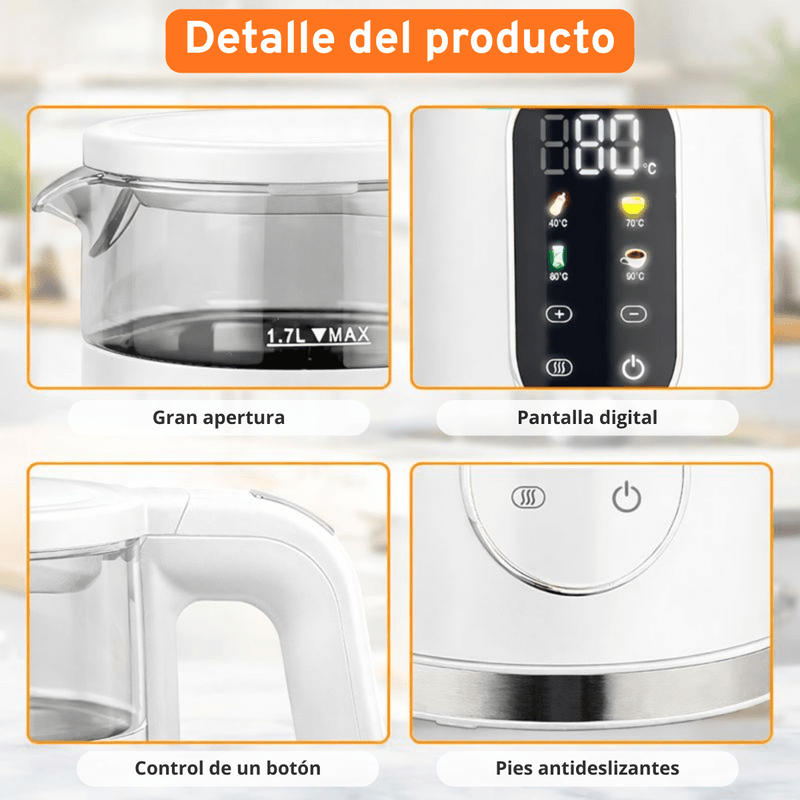 Con nuestra pava eléctrica Novohome vas a descubrir una nueva forma de disfrutar tus bebidas calientes. Diseñada para brindarte rapidez y precisión, cuenta con temperaturas preestablecidas y una pantalla digital para que cada infusión tenga el punto perfecto. Prepara un mate a la temperatura ideal, un té aromático, un café intenso o hasta tu sopa instantánea favorita en cuestión de minutos. Además, su sistema de apagado automático te ayuda a ahorrar energía y garantiza seguridad, apagándose cuando el agua está lista.