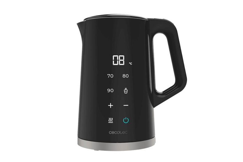 La Cecotec ThermoSense 800 Neo es una pava eléctrica inteligente diseñada para infusionistas y amantes del buen mate, té o café. Con 1,7 litros de capacidad y 2200 W de potencia, hierve el agua en pocos segundos para que no tengas que esperar. Permite regular la temperatura grado a grado entre 40 °C y 100 °C desde su pantalla digital táctil, o elegir entre 4 niveles preestablecidos (70/80/90/100 °C) ideales para cada bebida.