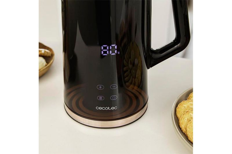 - Temperatura regulable: ajustá la temperatura en intervalos de 5ºC entre 40 y 100 ºC desde su pantalla táctil, o seleccioná entre sus 4 niveles de temperatura preestablecidos: 70 ºC (té verde), 80 ºC (té o mate), 90 ºC (café), 100 ºC (hervir).