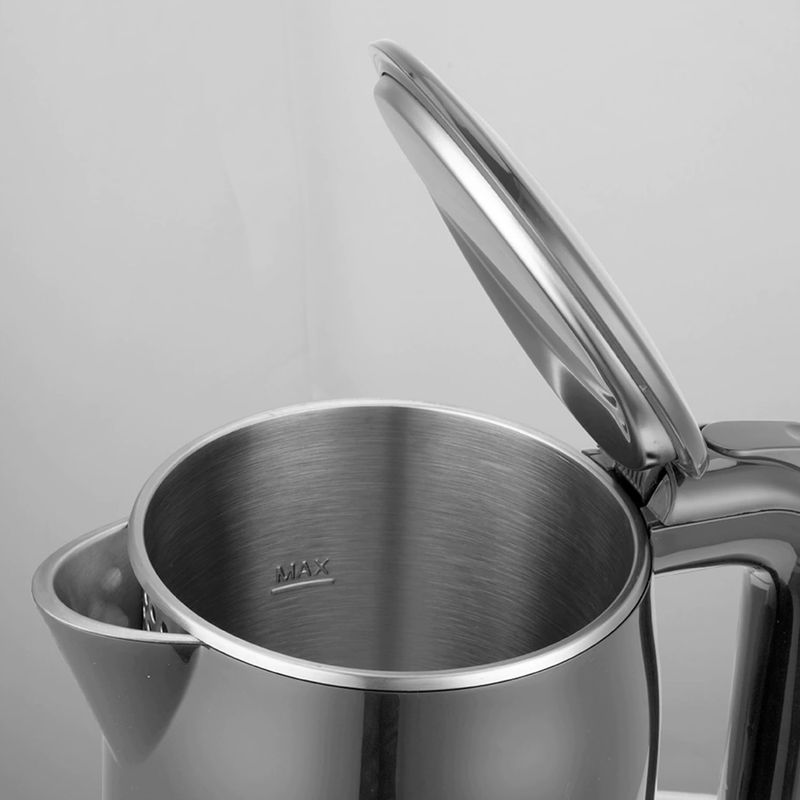 - Doble Pared Aislante: Fabricada con doble pared de acero inoxidable SUS304 de alta calidad. Esto garantiza que la pava sea segura al tacto por fuera y que el agua se mantenga caliente por más tiempo.