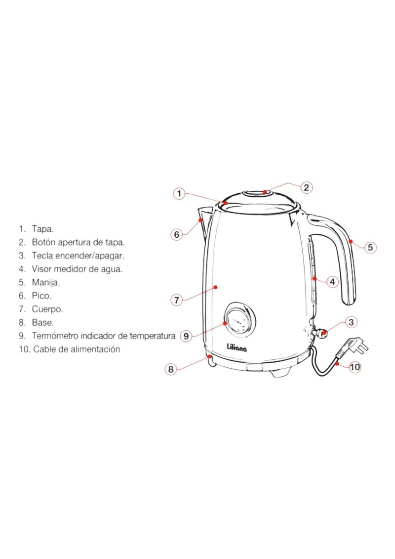 - Nombre del producto:Pava Eléctrica Liliana AP990R Inox Roja con Termómetro – 1.7L, 2000W