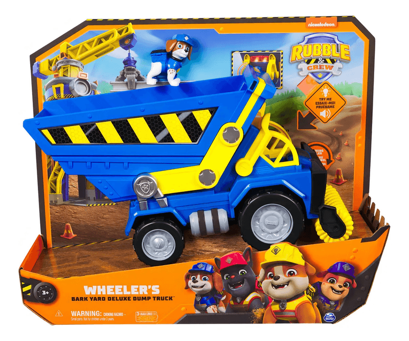 El Camión Volquete Deluxe de Paw Patrol Rubble & Crew está listo para la acción y la construcción. Inspirado en el personaje, este vehículo ofrece una experiencia de juego llena de aventuras, ideal para recrear misiones de trabajo y rescate.