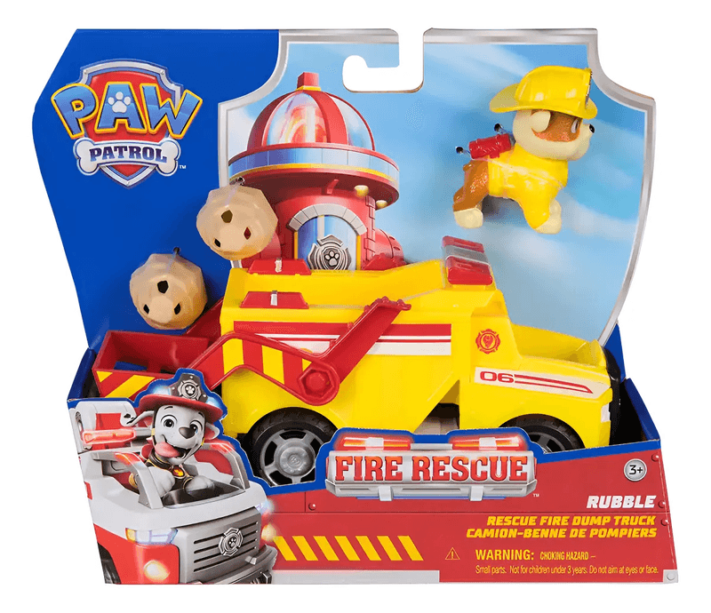 ¡Prepárate para una aventura de rescate con Rubble Fire Rescue de Paw Patrol! Este valiente cachorro de construcción está listo para ayudar en emergencias con su vehículo especializado y demostrar que ningún trabajo es demasiado grande.