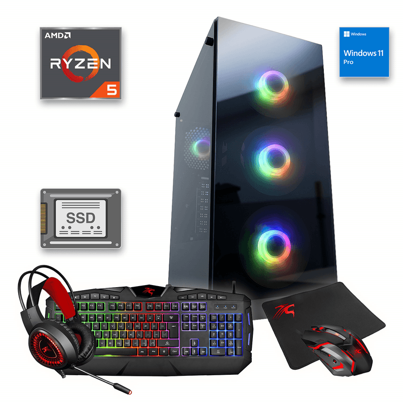 PC AMD RYZEN 5 5600GT 16GB SSD 960GB WIN 11 RGB TECLADO/MOUSE/PAD/AURICULARES