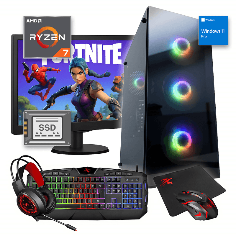 PC AMD RYZEN 7 5700G 16GB SSD 480GB WIN 11 MONITOR 19" RGB TECLADO/MOUSE/PAD/AURICULARES Memoria 16 GB RAM