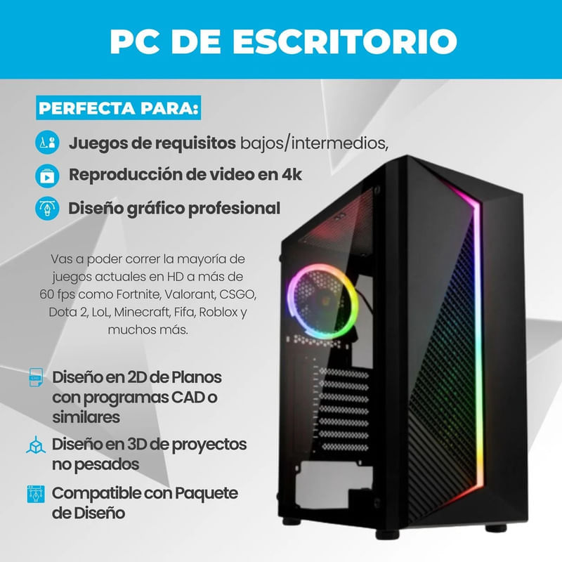 ¡Potencia tu experiencia de juego al máximo con nuestra increíble PC Gamer diseñada para brindarte un rendimiento excepcional en una amplia gama de juegos! ¿Estás listo para sumergirte en mundos virtuales llenos de acción, estrategia y diversión sin límites? ¡Entonces esta es la PC que has estado buscando!