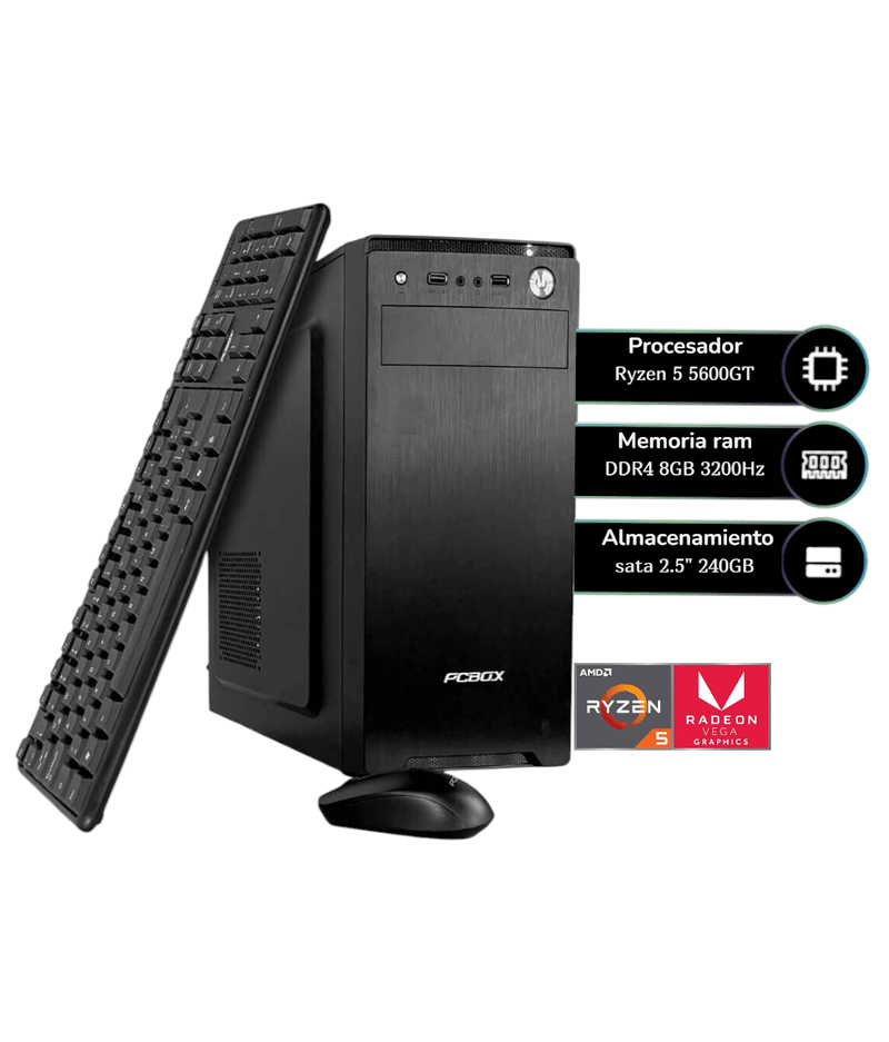 Pc Pcbox Amd Ryzen 5 5600Gt, 8Gb, Ssd 240 Gb, Kit: Teclado, Mouse, W11Hsl