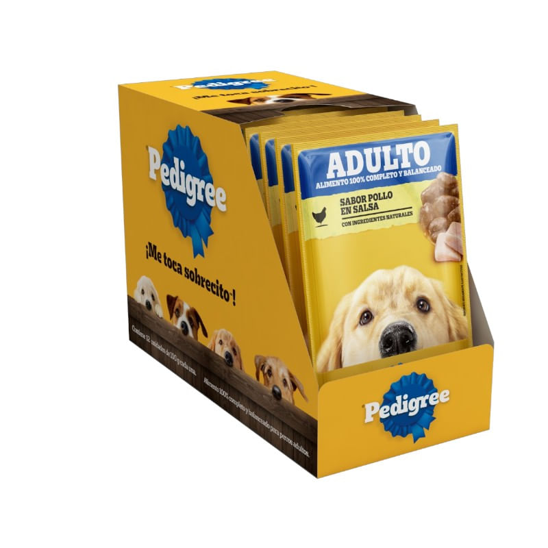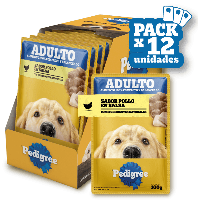 Pedigree® Sobre Adulto con ingredientes naturales es alimento húmedo 100% completo y balanceado cocido al vapor, que contiene suaves trocitos en salsa y ha sido formulado para perros adultos aportando, vitalidad y energía en cada porción.
