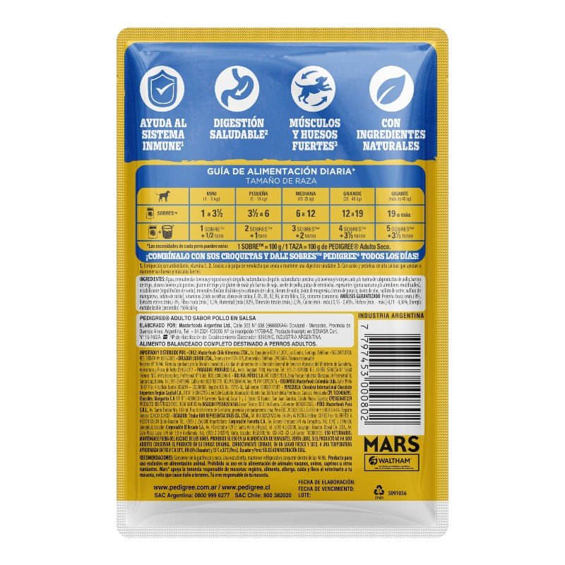 PEDIGREE ALIMENTO HÚMEDO SOBRECITO PERRO ADULTO POLLO 12UN