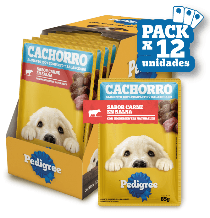 Pedigree® Sobre Cachorro con ingredientes naturales es alimento húmedo 100% completo y balanceado cocido al vapor, que contiene suaves trocitos en salsa y ha sido formulado para perros cachorros, aportando vitalidad y energía en cada porción.