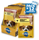 Pedigree® Sobre Adulto Razas Pequeñas con ingredientes naturales es alimento húmedo 100% completo y balanceado cocido al vapor, que contiene suaves trocitos en salsa y ha sido formulado para perros adultos de razas pequeñas aportando, vitalidad y energía en cada porción.