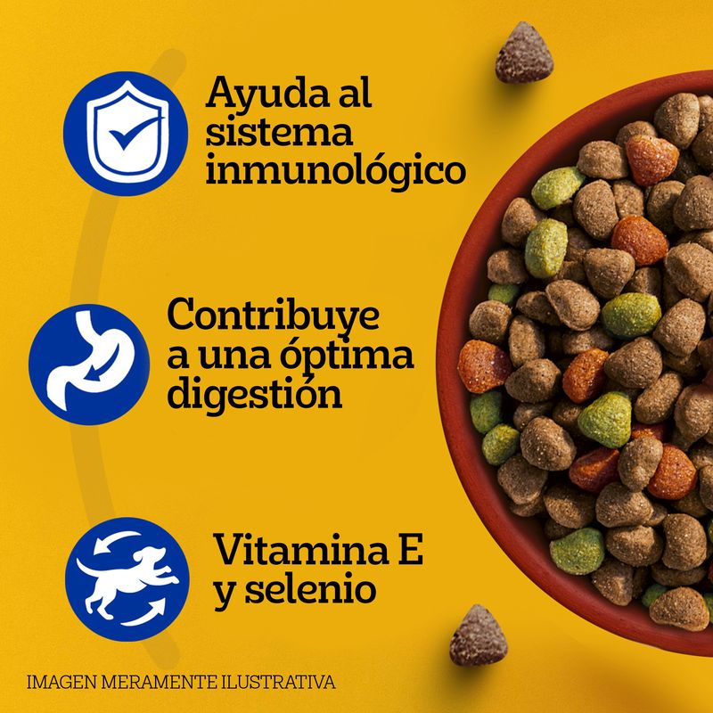 En PEDIGREE® creemos que todos los perros merecen un hogar lleno de amor. Ellos alimentan lo mejor de nosotros y queremos alimentar lo mejor de ellos, por eso trabajamos duro por darle a cada uno de ellos una nutrición completa, balanceada y de calidad.​PEDIGREE® alimento seco es elaborado bajo estrictos estándares de calidad y basado en el conocimiento científico de WALTHAM®, una autoridad líder en nutrición animal. Las recetas de PEDIGREE® ayudan a su sistema inmune gracias a NutriDefense™, con DHA para contribuir a su desarrollo cerebral y visual, están hechas con Omega 6 que ayudan a una piel y pelo saludable con prebióticos que ayudan a proteger su intestino y fibras naturales para una óptima digestión.​