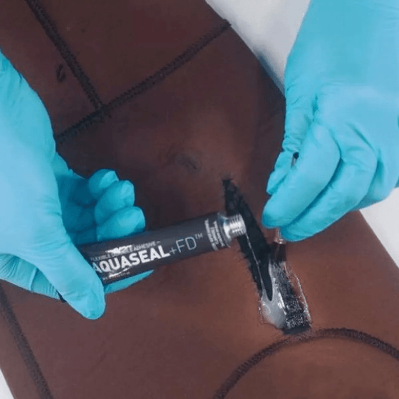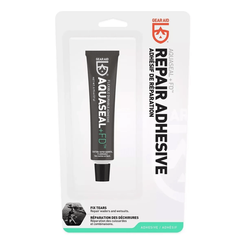 Con Aquaseal, un adhesivo de reparación flexible y duradero de GEAR AID (McNett) puede reparar fácilmente roturas y rasgaduras en sus botas, waders respirables, camperas respirables, trajes de neopreno e inflables. Aquaseal es un adhesivo y sellador transparente y resistente al agua, especialmente formulado para la flexibilidad, adhesión y protección contra la abrasión que necesita para mantenerse en movimiento.