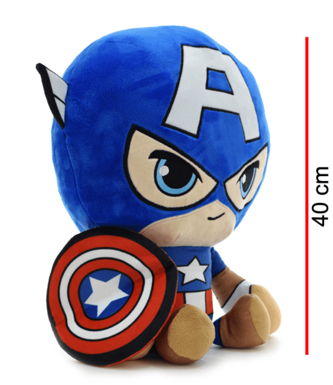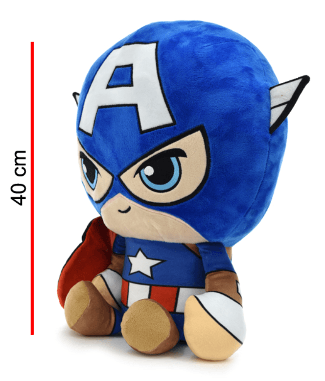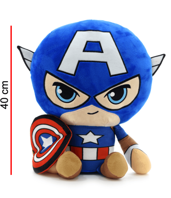 Peluche Capitán América Sentado 40m, marca Phi Phi Toys. El compañero ideal para los más chicos de la casa, podrán divertirse y dormir con este suave y excelente peluche.