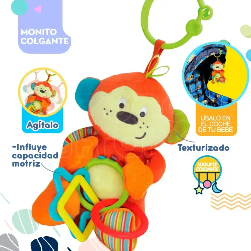 El sonajero mono es colorido, suave, peludo y fácil de sostener. Tiene anillos de colores fácil agarre para + de 0 meses.