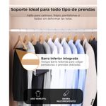 Perfectas para camisas, sacos o pantalones, ya que incluyen barra integrada para colgar prendas de forma segura.