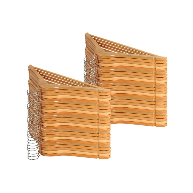 Incluye 50 perchas de madera natural ideales para optimizar el espacio y mantener tu ropa prolija y sin marcas.