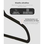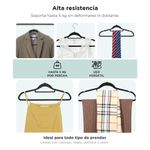Cada percha incluye una barra central ideal para colgar cinturones, corbatas o bufandas sin ocupar espacio adicional.