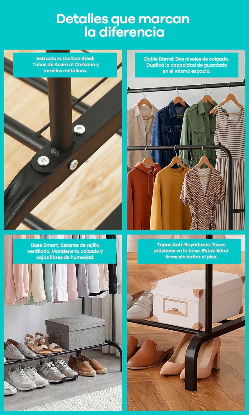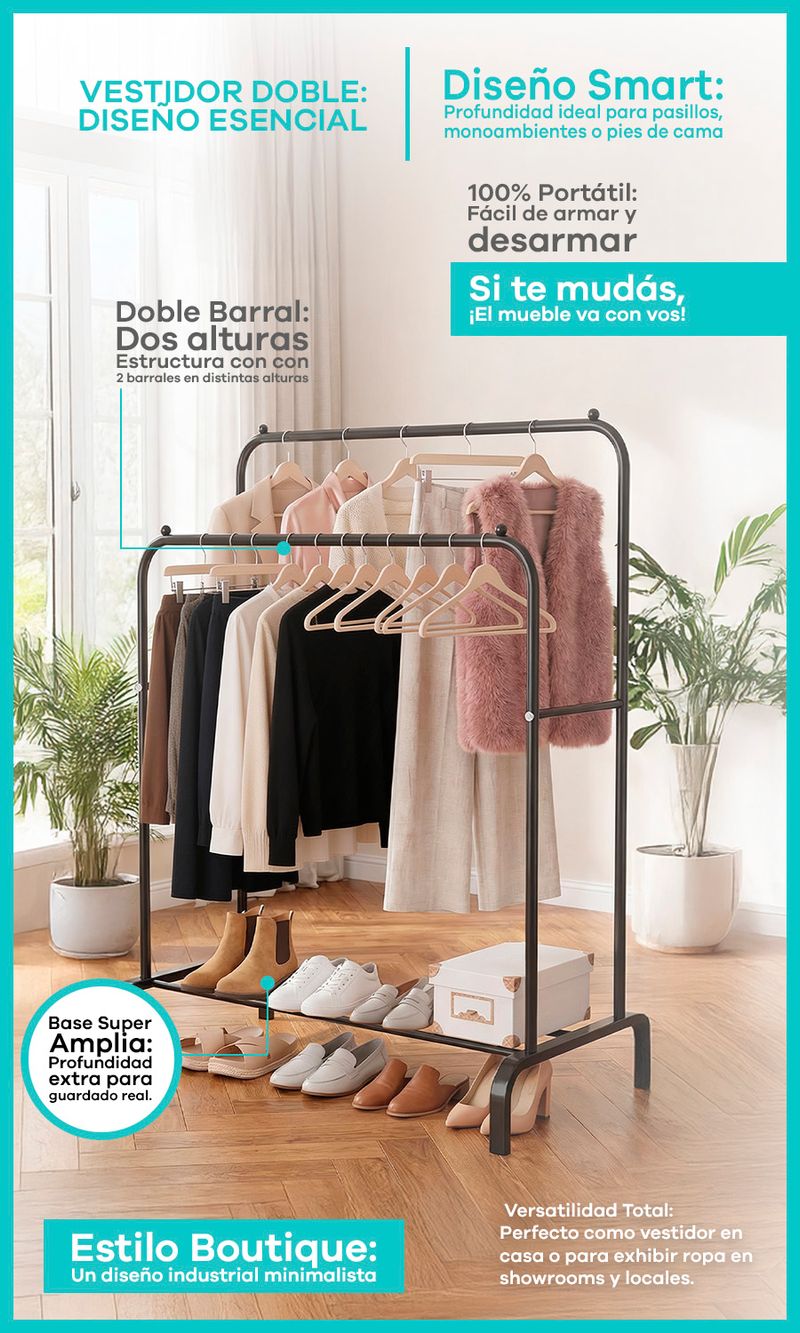 -Versatilidad Total: Perfecto como vestidor en casa o para exhibir ropa en showrooms y locales.