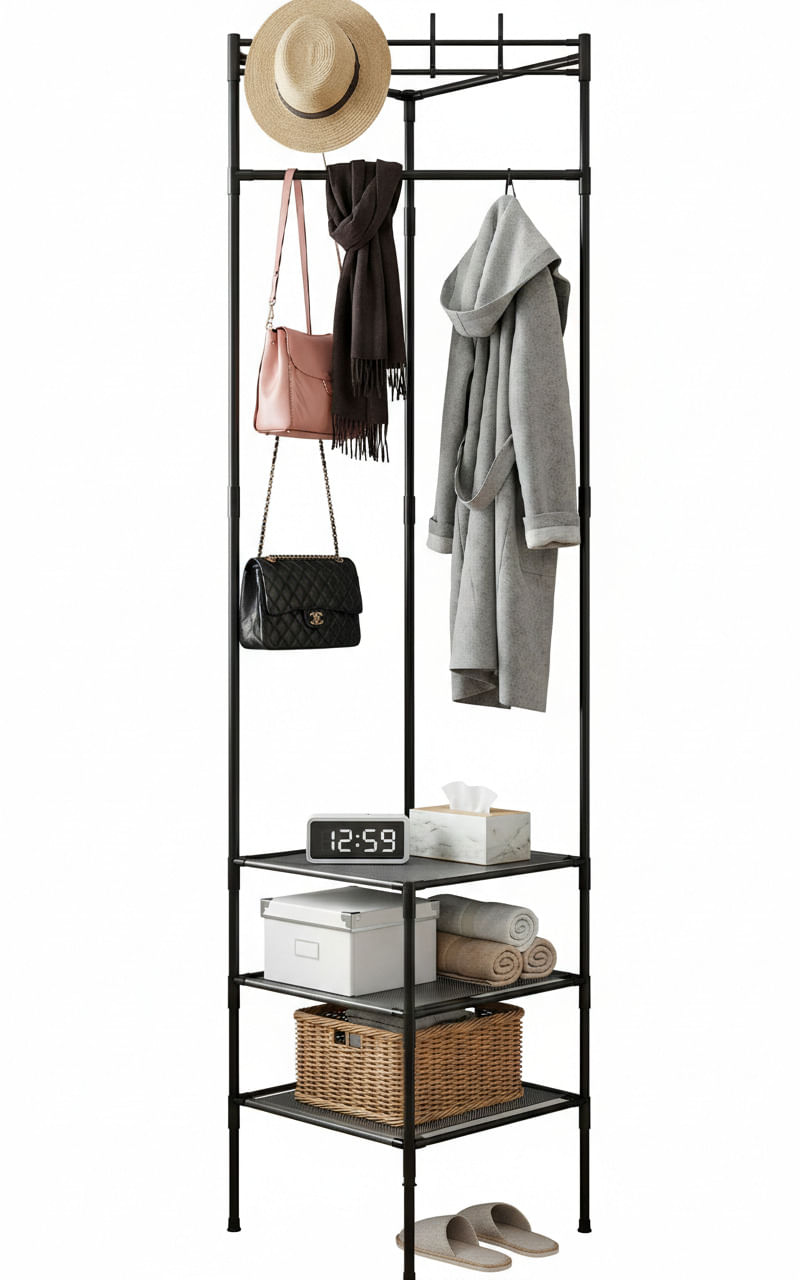 Nuestro Perchero Esquinero llega para transformar ese angulo vacio en un espacio de guardado con estilo. Con su diseño "Smart" a 90 grados, activas cualquier rincón de tu casa, showroom u oficina. Estética minimalista, aire industrial y capacidad real para que tu ropa se luzca mientras ganas metros cuadrados.